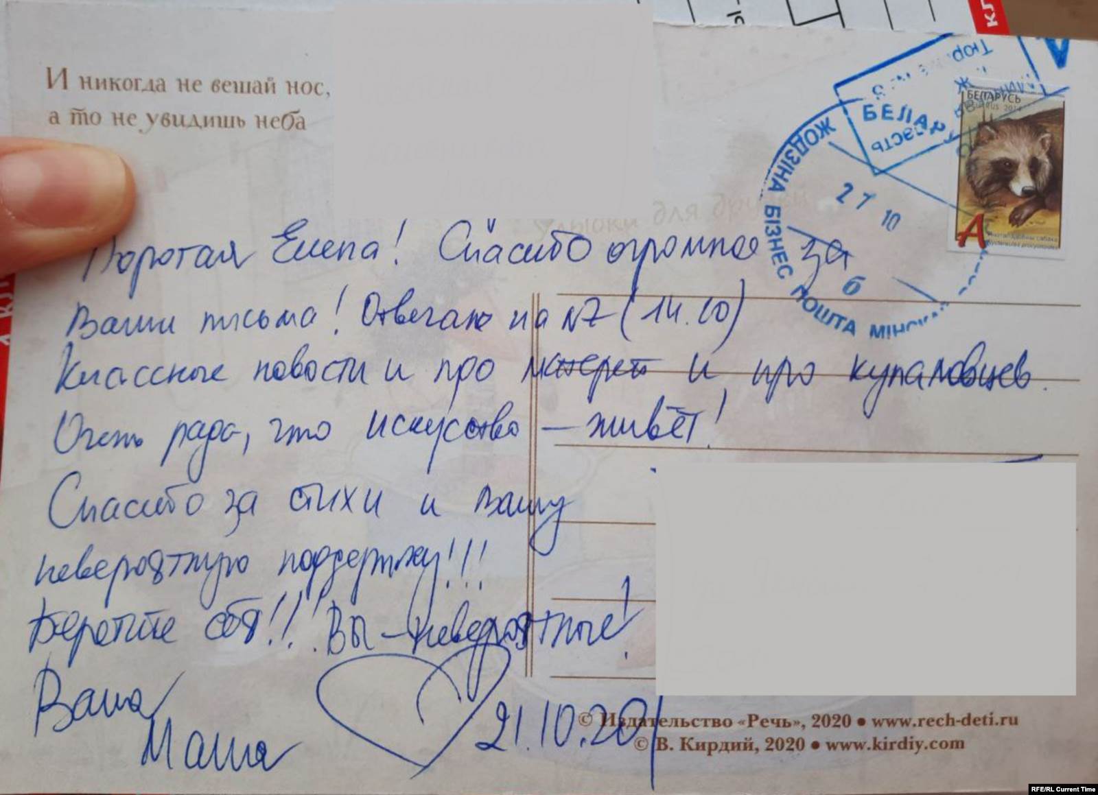 Те, кто пишет политзаключенным (а их в Беларуси сейчас более 500 человек), знают, что все письма проходят цензуру. Намеки, оценки, непонятные аббревиатуры уменьшают шансы послания попасть к адресату и могут даже навредить ему. Но сказать наверняка, какое письмо пройдет цензуру, очень сложно, говорит Татьяна Хомич: